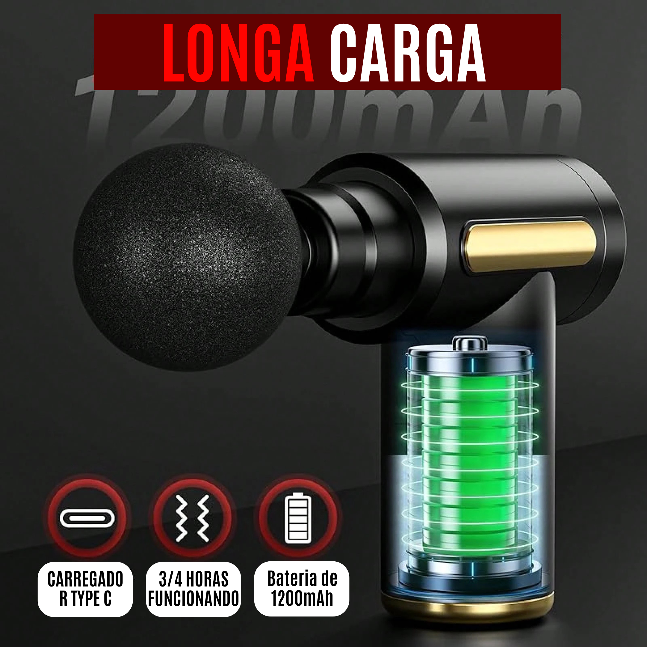 Bateria de Longa Duração: Totalmente sem fios e recarregável, oferecendo autonomia para diversas sessões de massagem antes da próxima recarga.